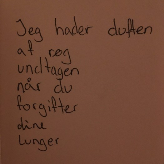 Posted on august 24, 2016juli 31, 2016 af CilHverdags Poesi #4 Spred ordet Click to share on X(Åbner i et nyt vindue) X Klik for at dele på Facebook(Åbner i et nyt vindue) Facebook Klik for at dele på Tumblr(Åbner i et nyt vindue) Tumblr Like Henter... Relateret
